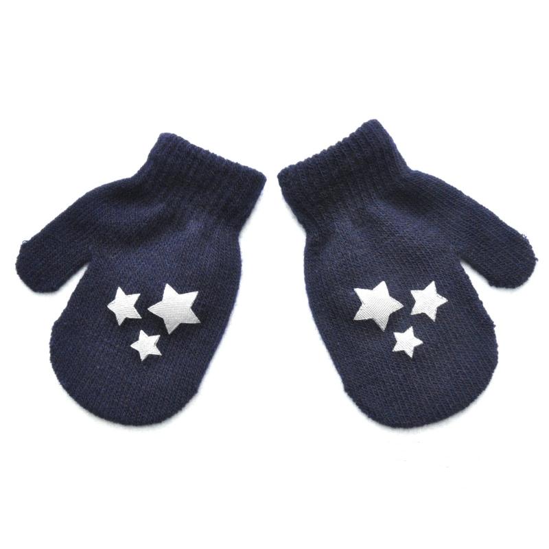 Милые детские перчатки со звездами, зимние теплые детские перчатки с защитой от хватания, чехол для сумки с рисунком «Любовь» для малышей, девочек и мальчиков, варежки с полным пальцем темно-синий