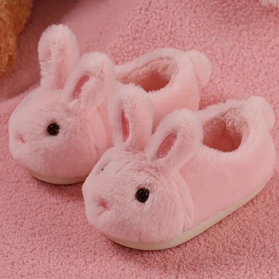 Милые детские тапочки из хлопка с кроликом, домашняя и уличная одежда, зимние, теплые, нескользящие, удобные, плюшевые, хлопковые туфли с героями мультфильмов розовый