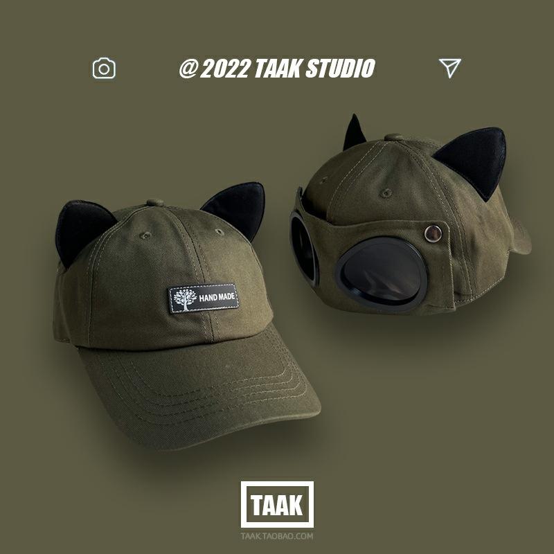 Милые кошачьи ушки пилотные очки бейсболка женская летняя солнцезащитные очки кепка мужская универсальная студенческая Adjustable зелёный