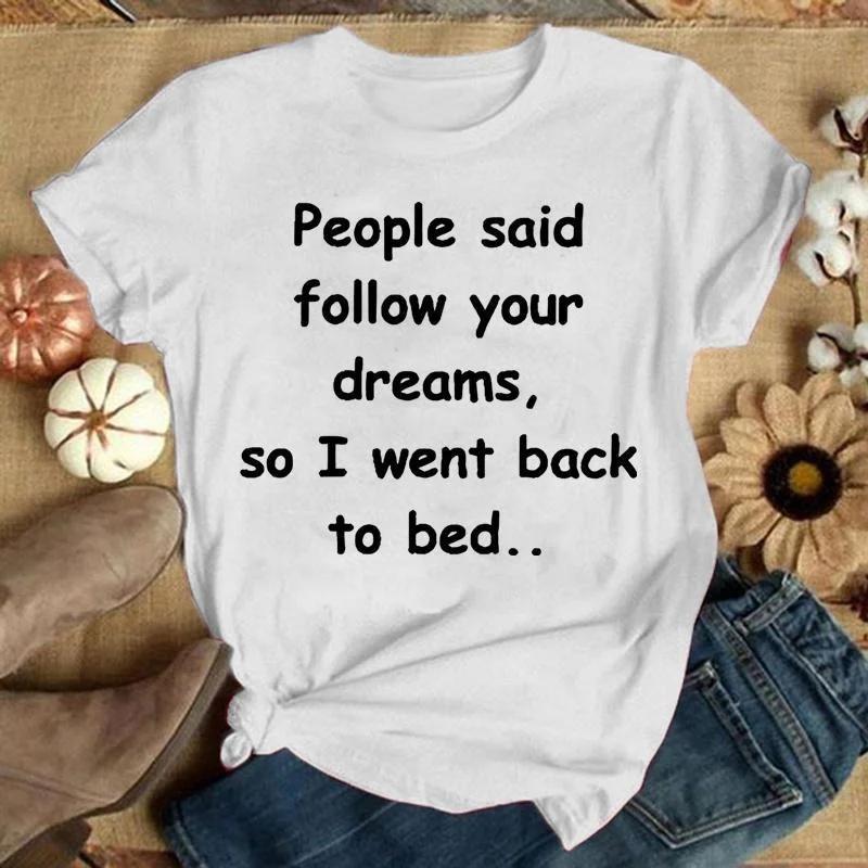 Милые летние футболки с короткими рукавами, забавная надпись с надписью «ЛЮДИ ГОВОРИЛИ: СЛЕДУЙ ЗА СВОИМИ МЕЧТАМИ, ПОЭТОМУ Я ВЕРНУЛСЯ В СПАТЬ...», футболка с круглым вырезом XXXL золотой
