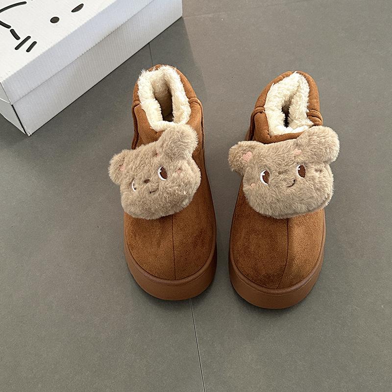 Милые мультяшные короткие зимние сапоги с медвежонком, осенне-зимние, из замши, в стиле ретро, из вельвета, плюс девичьи повседневные модные ботинки на платформе 40-41 коричневый