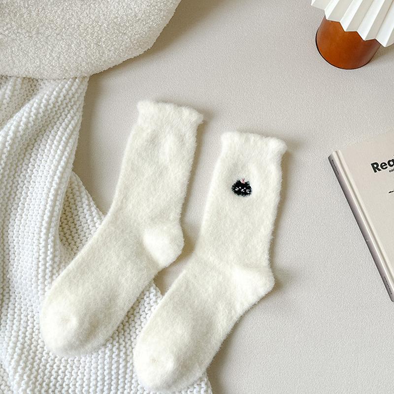 Милые носки из норкового флиса с мультяшным рисунком животных, белые носки средней длины, толстые, теплые, домашние носки для пола, девчачий универсальный аксессуар, носок в подарок