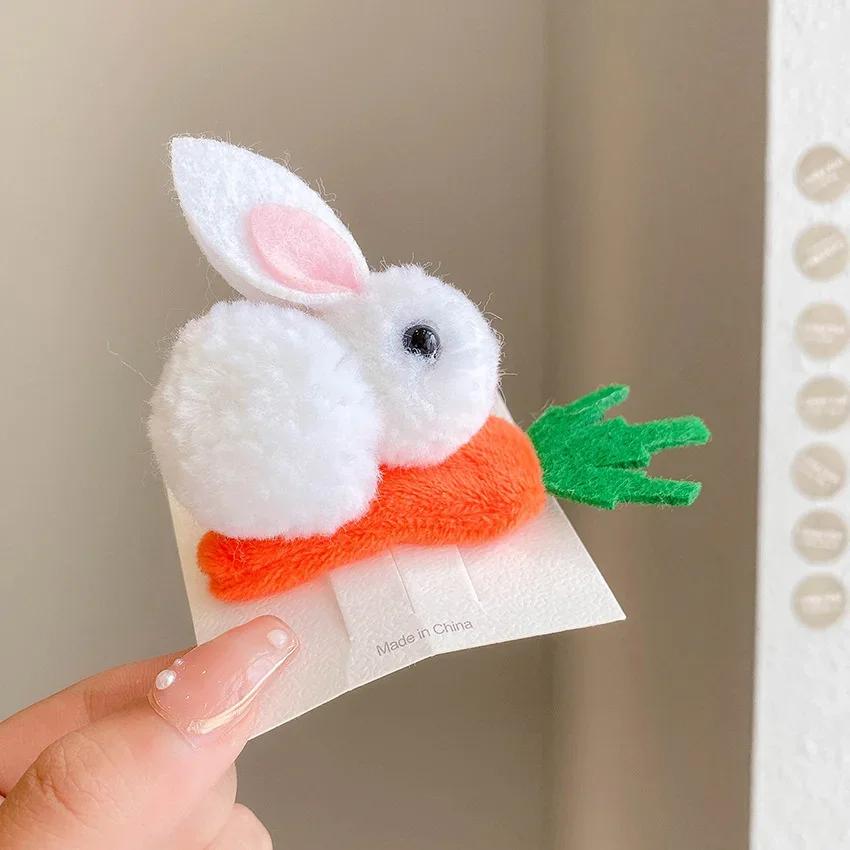 Милые плюшевые заколки для волос в виде кролика, детские, для девочек, в форме сердца, ультра-сказочные, боковые заколки, вязаные головные уборы для волос, унисекс, заколка для волос в милом стиле