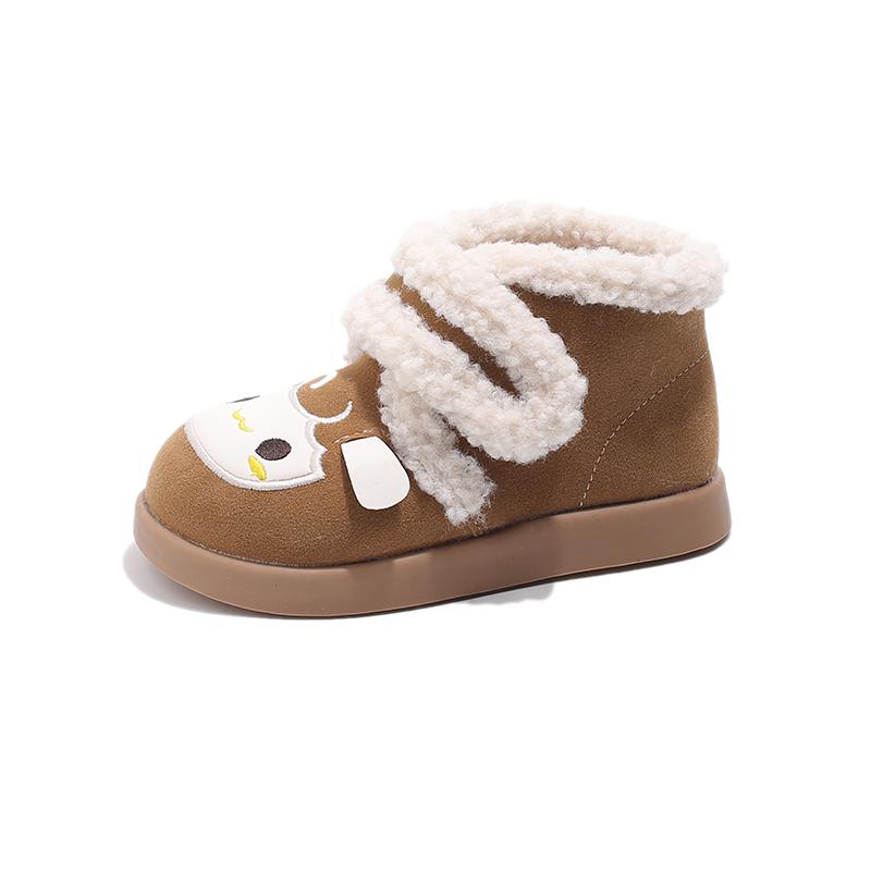 Милые сапоги зимние из овечьей шерсти, новый тренд, детские сапоги для снега, теплые, универсальные, детская повседневная мода, ботильоны хлопковые, с круглым носком 22 жёлтый