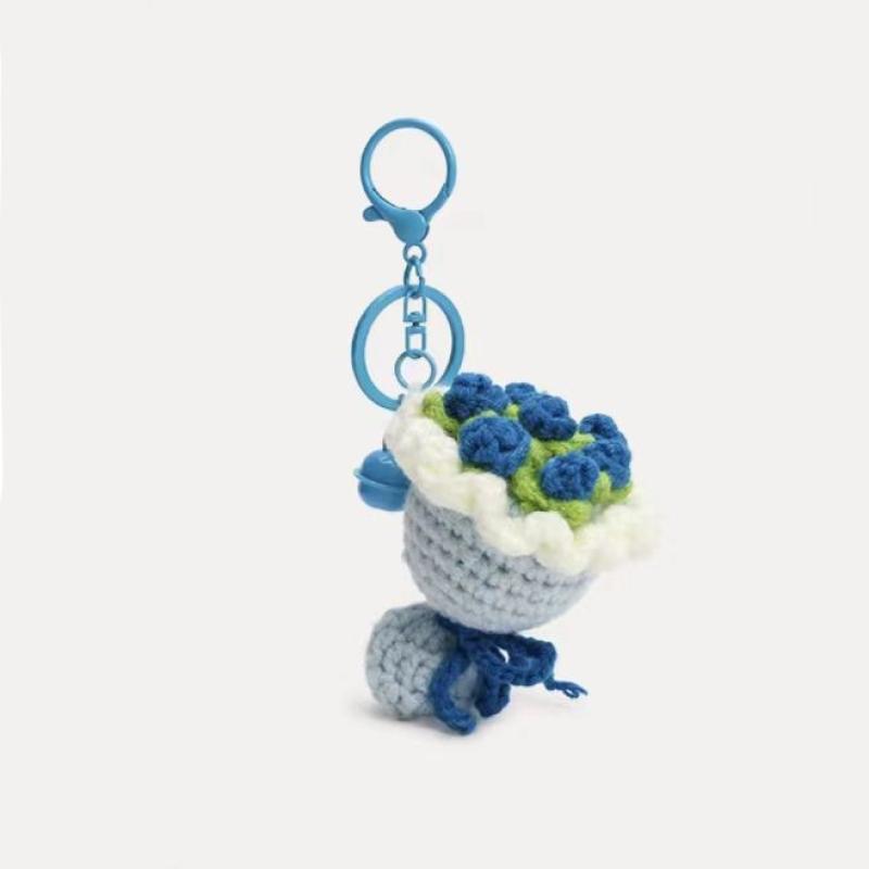 Милый вязаный крючком брелок-букет, мини-брелок с ручной вязкой в виде цветка, кольцо, подвеска-украшение для сумки/машины, подарок для влюбленных на День святого Валентина