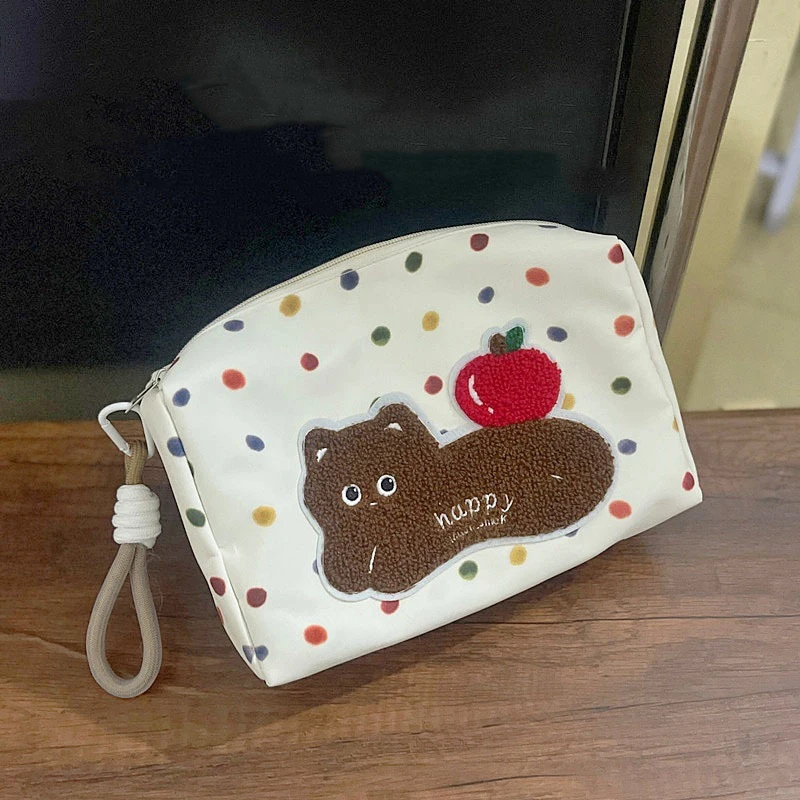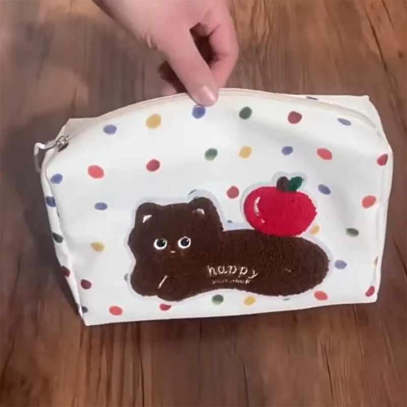 Милый котенок, яблоко, кошка, косметичка в горошек, милая модная косметичка, большая вместительная дорожная портативная сумка для хранения, пенал, подарок
