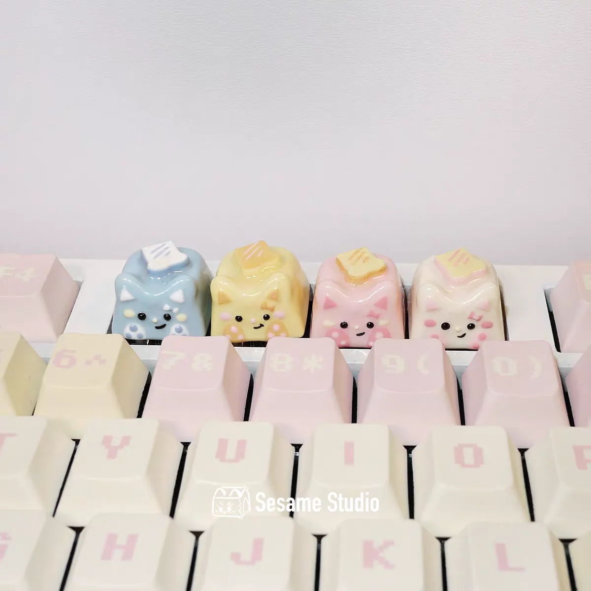Милый мультяшный кот, колпачок для клавиш ручной работы, персонализированные колпачки для клавиш ESC, креативный подарок для механической клавиатуры Cherry MX
