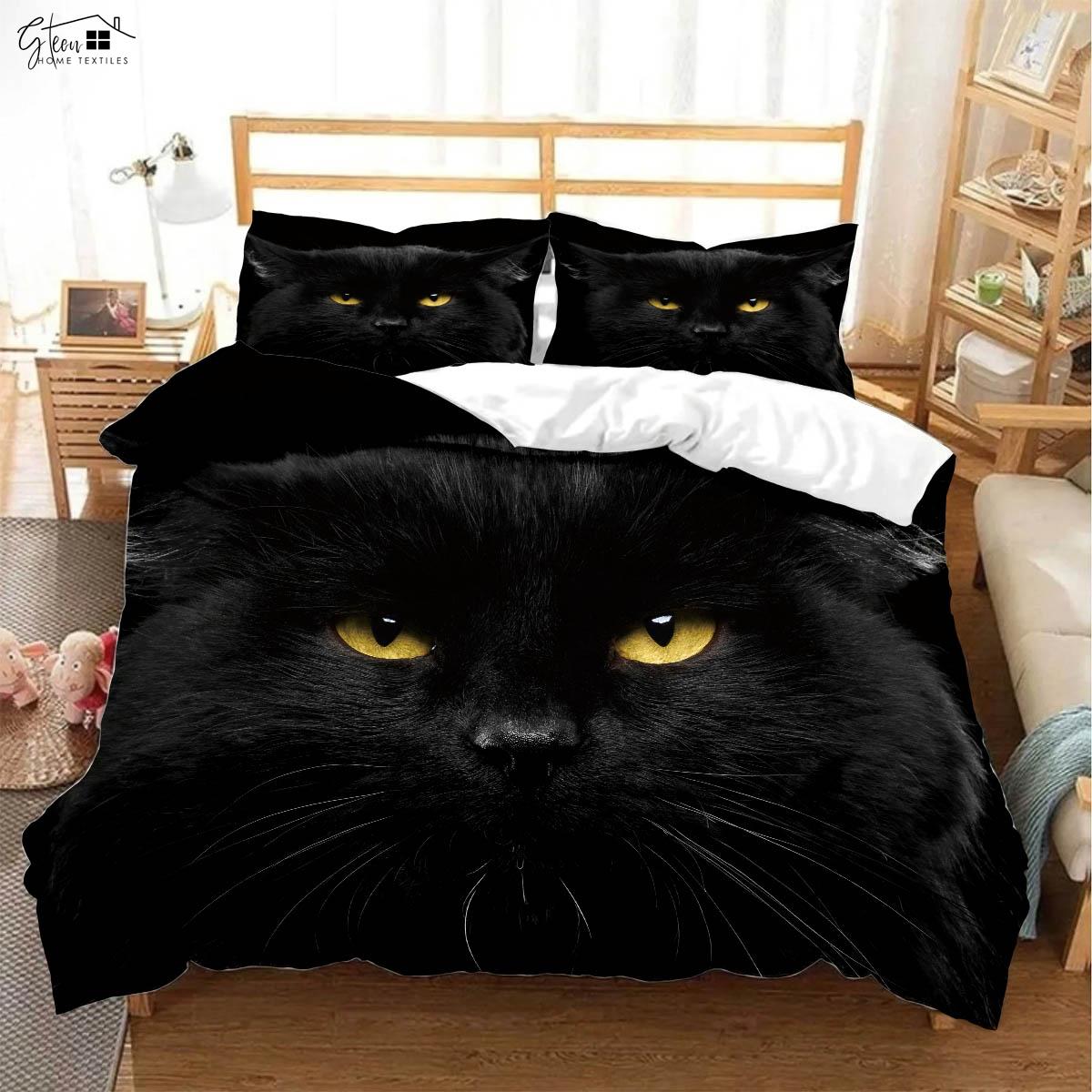 Милый мультяшный принт для купания кота, пододеяльник, комплект постельного белья, пододеяльник, наволочка, детский подарок, машинная стирка, 3 предмета EU 135x200cm 2PCS