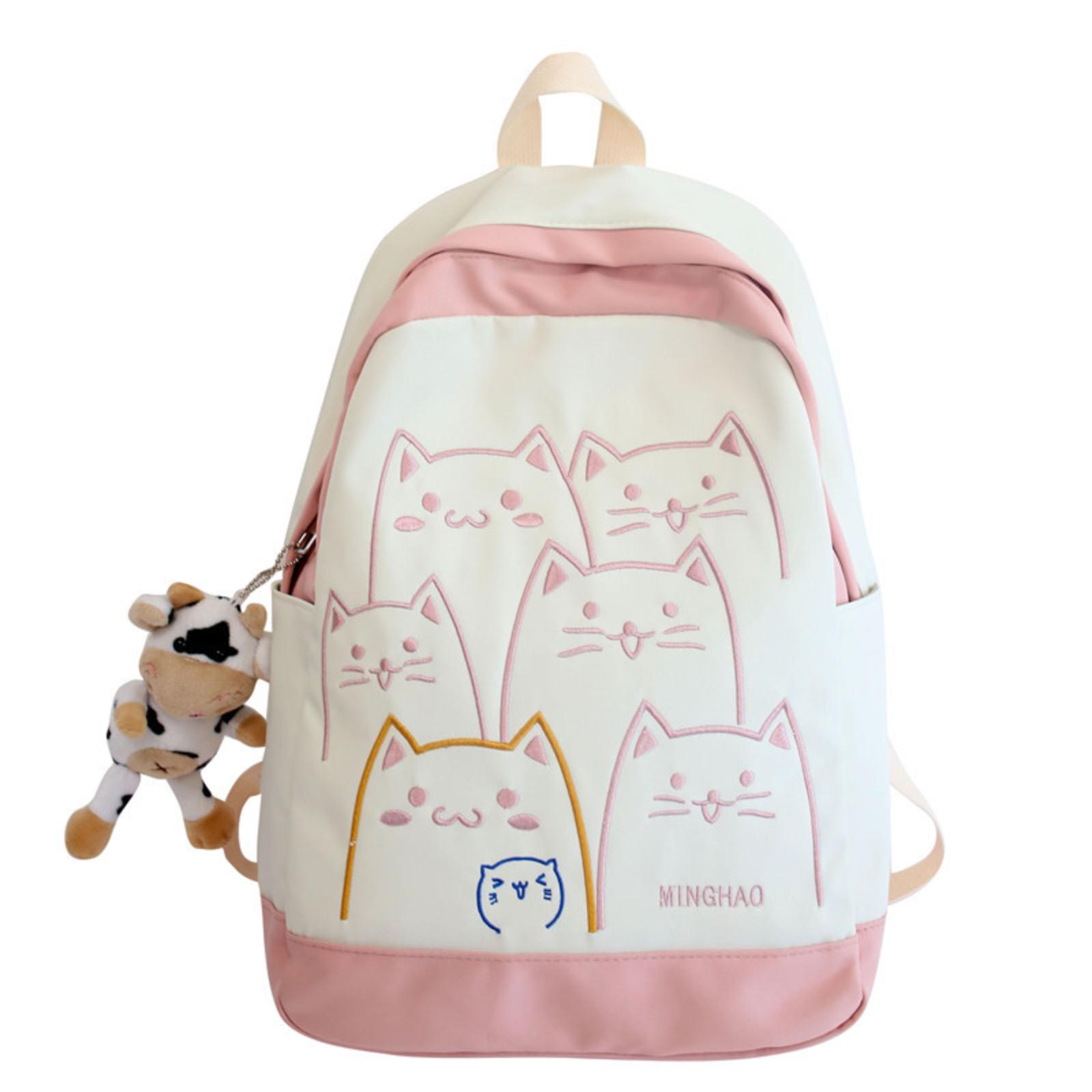 Милый рюкзак с персонализированной вышивкой, мультяшная школьная сумка, контрастный цветной рюкзак One Size розовый