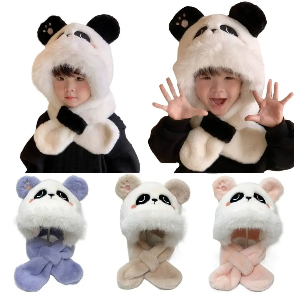 Милый теплый шарф, интегрированная шапка, большая окружность головы, однотонная шапка панды, утолщенная теплая белая зимняя шапка с волосами