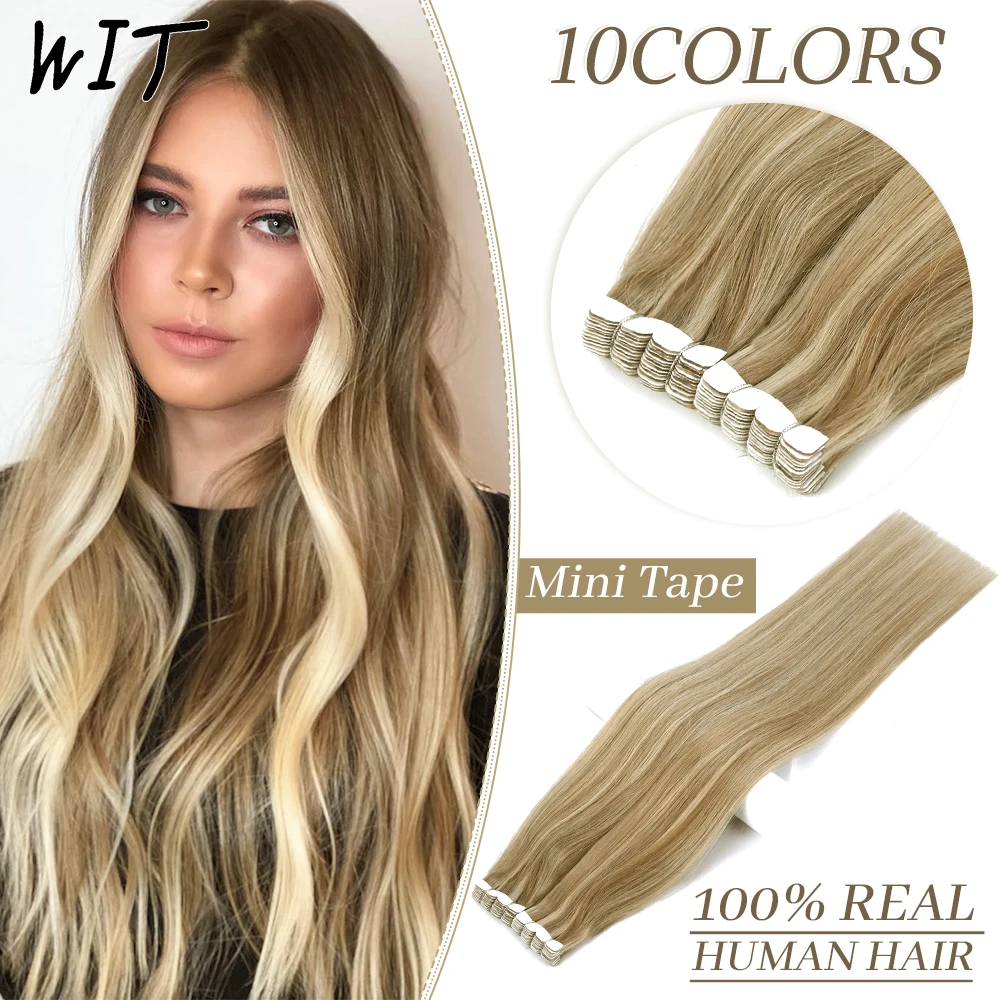 Миниатюрная лента для наращивания волос, прямая машинка из натуральных человеческих волос, не Реми, бесшовная натуральная мягкая кожа, уток 10-20 дюймов, смесь цветов
