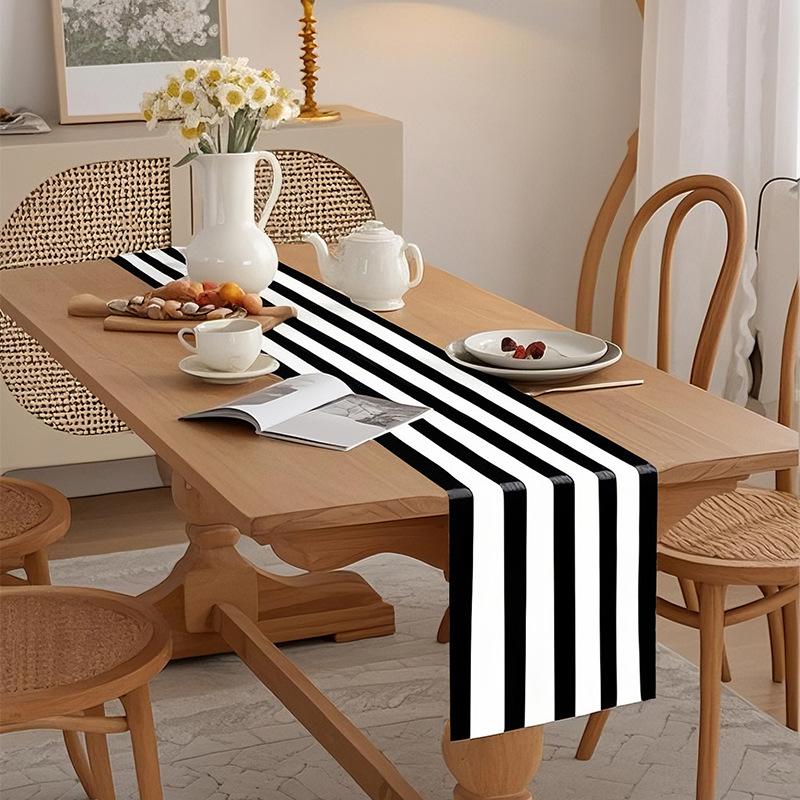 Минималистичная черно-белая полосатая скатерть-дорожка - Тяжелый полиэстерный декор для праздничных столов 30*180CM черный белый