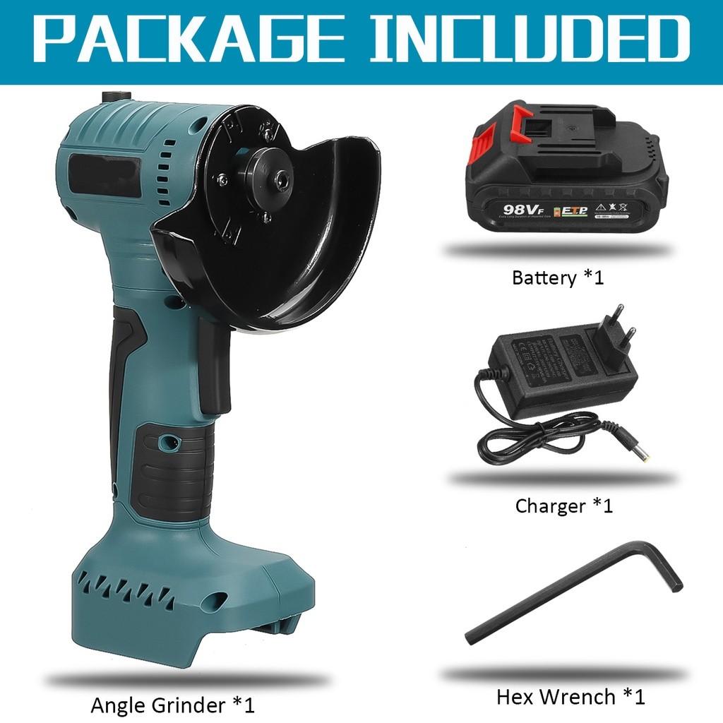 Мини аккумуляторная угловая шлифмашина 2800 Вт, бесщеточная режущая полировальная машина 98VF, вращающаяся головка, резка, портативная полировальная машина, электроинструмент для дома, сделай сам, синий+черный 1*Battery
