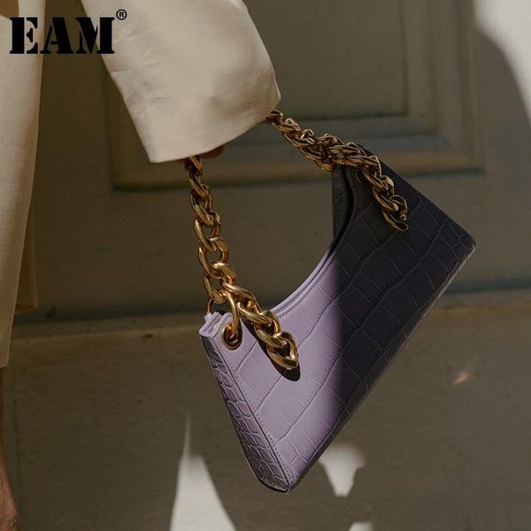 shoulder bags [eam] 2021 niche design coarse metal chain armpit bag street pu leather crocodile pattern baguette 18a6146