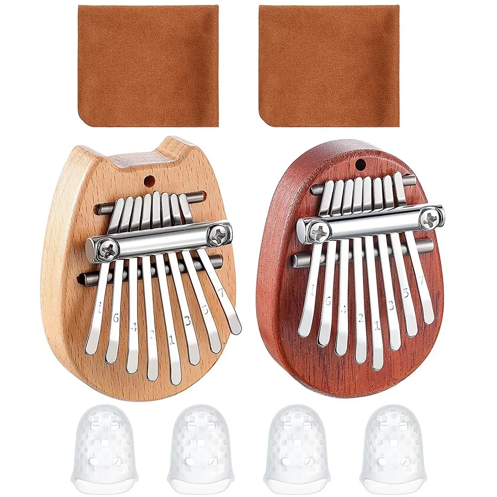 Мини-калимба, 8 ключей, включает в себя мини-Пальчиковое пианино для большого пальца со шнурком и цепочкой, протектор для пальцев и ткань для ...