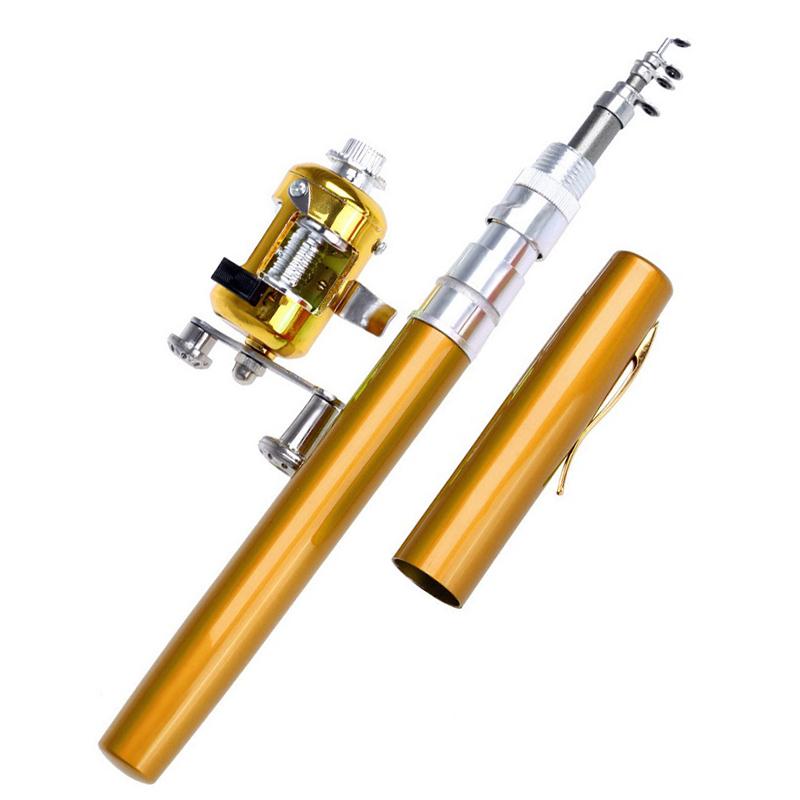 Мини-карманные удочки для зимней рыбалки, портативная телескопическая ручка, набор удочек и катушек, набор колес на открытом воздухе для рыбалки на реке и озере 1M жёлтый