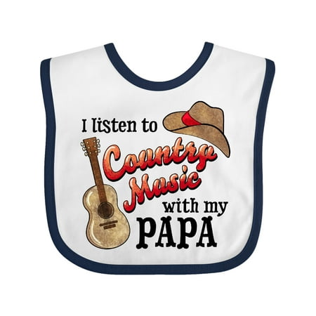 Inktastic I Listen to Country Music with My Papa with Guitar and Hat Gift Baby Boy or Baby Girl Bib