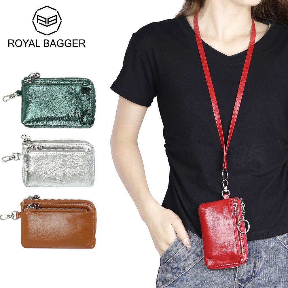 Мини-кошелек для монет Royal Bagger из натуральной кожи с брелком для ключей, многофункциональный клатч-кошелек на молнии, переносной держатель для карт с креплением на шею, 1930 г. чёрный
