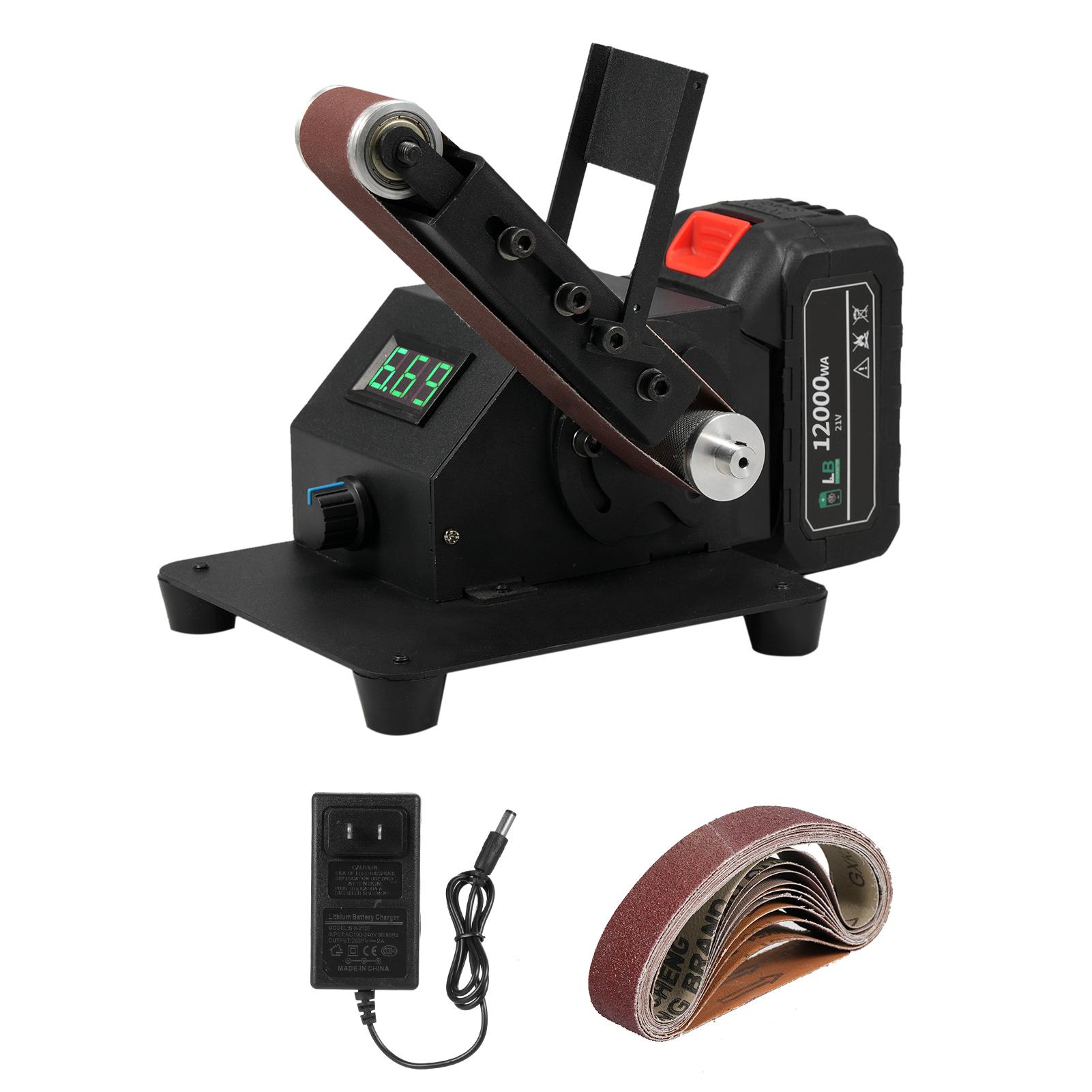Мини-ленточная шлифовальная машина 350 Вт, электрическая настольная шлифовальная машина, шлифовальный станок, бесступенчатая регулировка скорости, маленькая US Plug & 1 Battery & Standard model чёрный