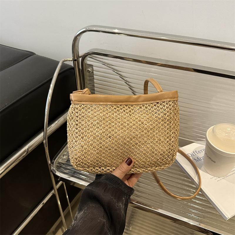 Мини летняя супер огонь маленькая сумка 2025 новая маленькая свежая пасторальная сумка кроссбоди плетеная из соломы плетеная сумка маленькая квадратная сумка хаки