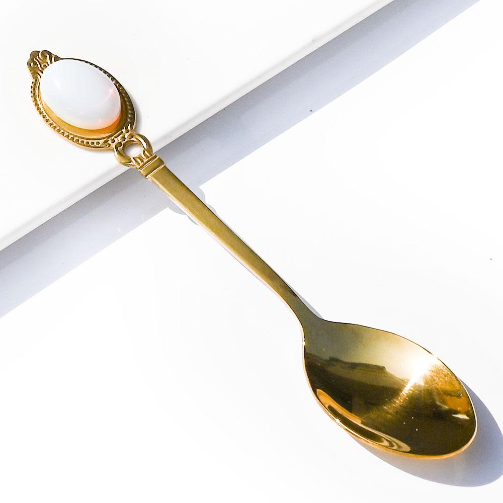 Мини-ложка из натурального хрусталя с нефритом, аметистовая ложка для размешивания, креативная подарочная ложка для супа Opal Synthesis (Gold)