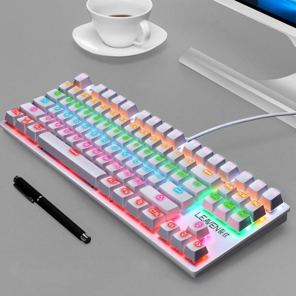 keyboards gaming mechanical keyboard 87 keys rainbow backlight punk wired for pro gamer laptablet pc colorful game