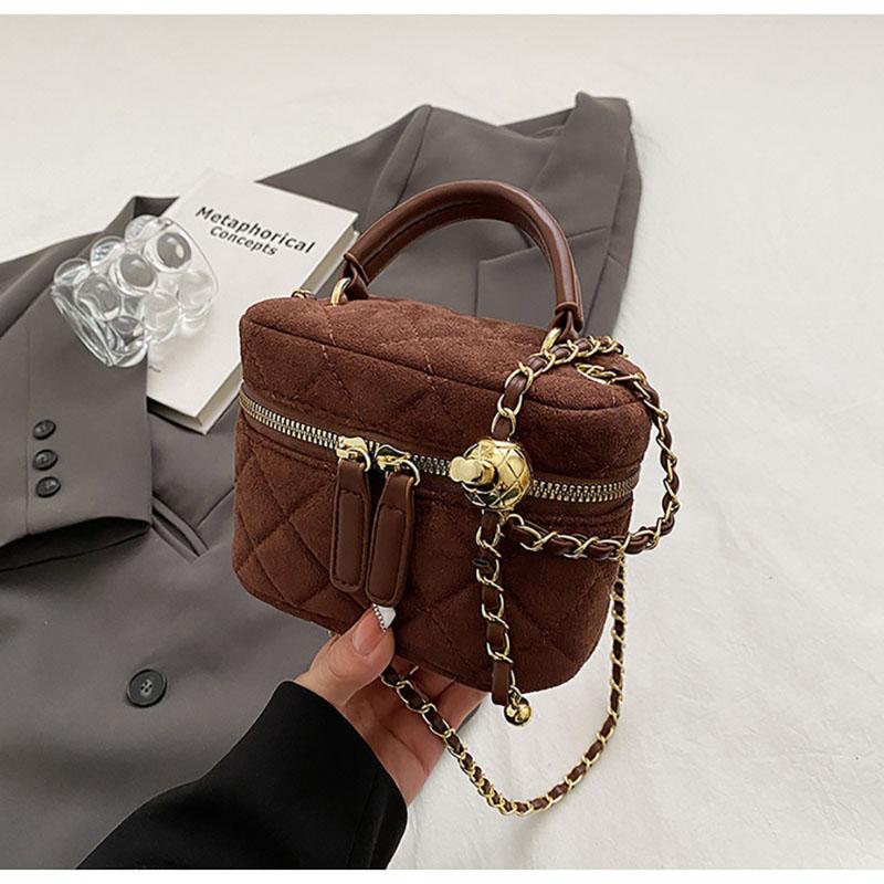 Мини-сумка из искусственной замши с цепочкой, квадратная, модная, с красной текстурой, простая сумка через плечо, корейская, маленькая, ароматная, ветровая сумочка Mini(Max Length<20cm)