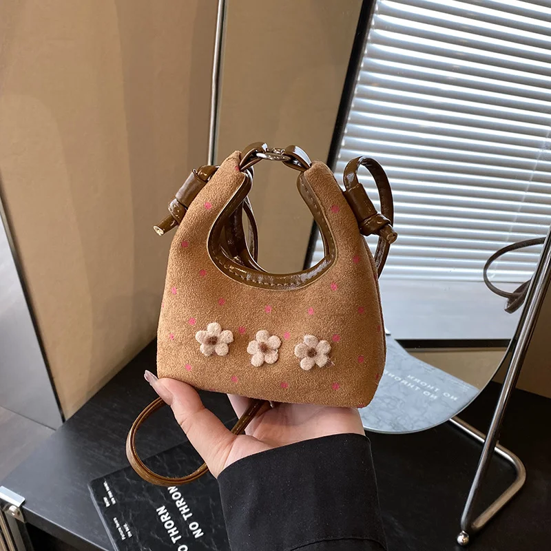 Мини-сумка через плечо в стиле ретро, женская осень 2021, универсальная замшевая высококачественная сумка на одно плечо, милые цветы, сумка для губной помады