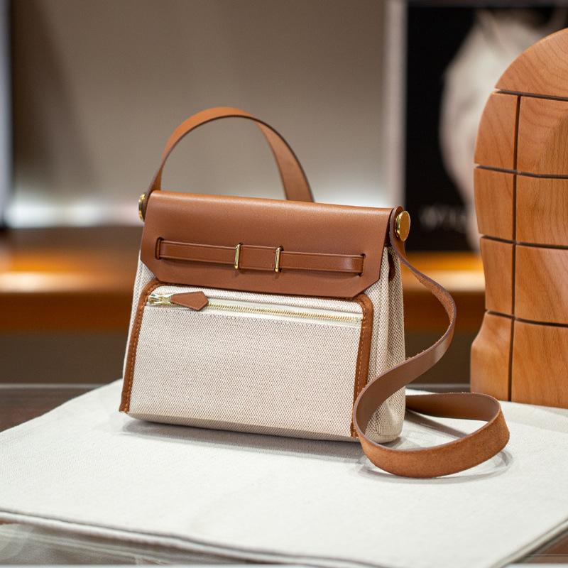 Мини-сумка через плечо из вощеной нити с верхним слоем из кожи цвета сливок и дерева, в стиле ретро, в стиле высокого класса, для мобильного телефона 20x7x17cm