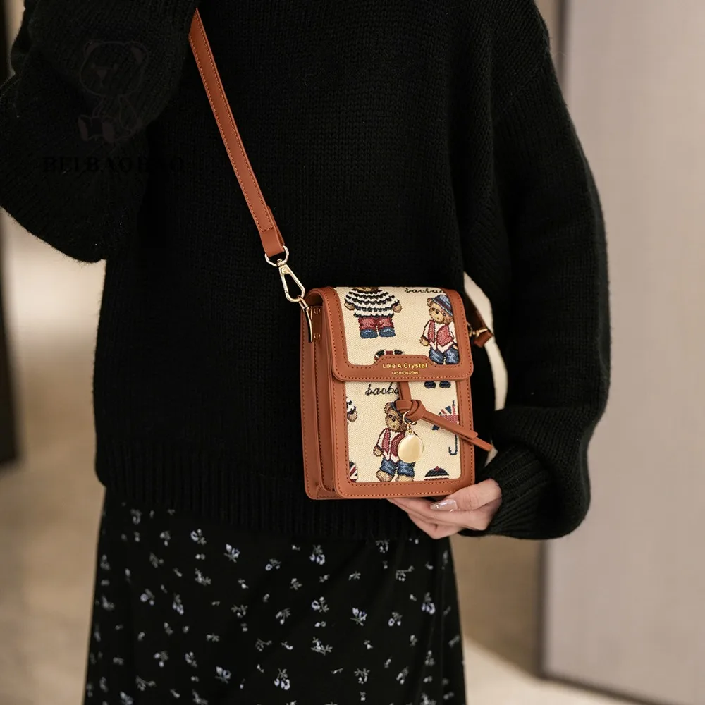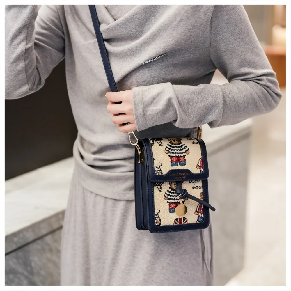 Мини-сумки-мессенджеры, маленькая квадратная сумка, женская новая модная тенденция с медведем, молодежная нишевая сумка-мессенджер на одно плечо, сумка для мобильного телефона