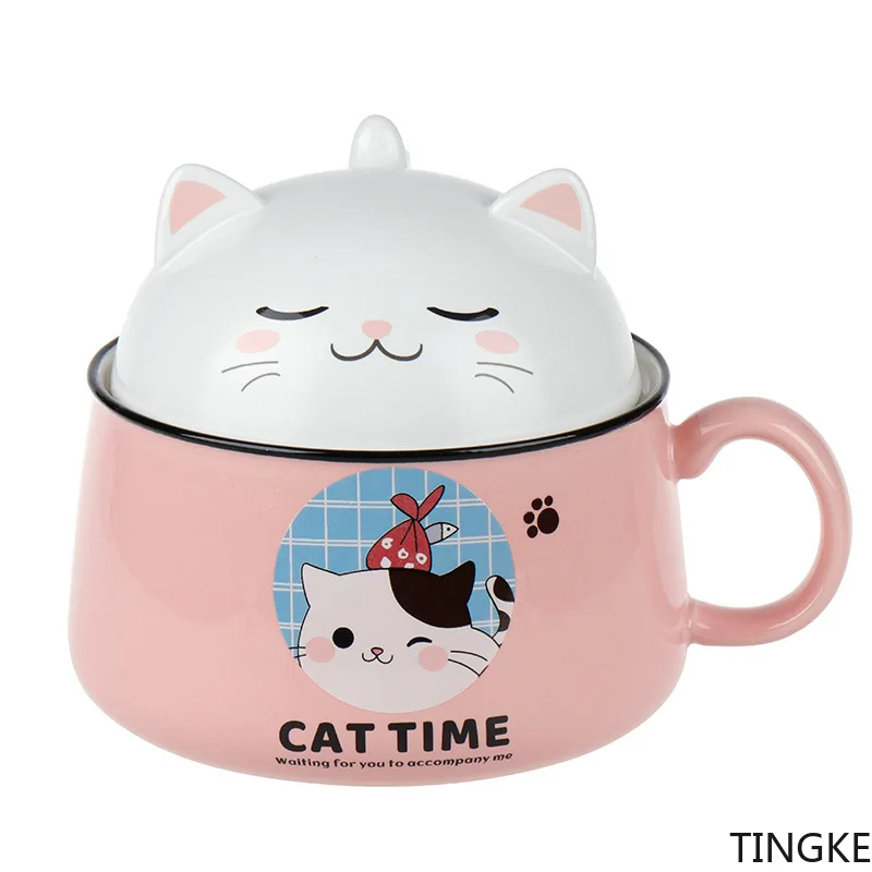 Миска для лапши быстрого приготовления большой емкости, милая керамическая фотоемкость с крышкой, Студенческая и офисная креативная японс...