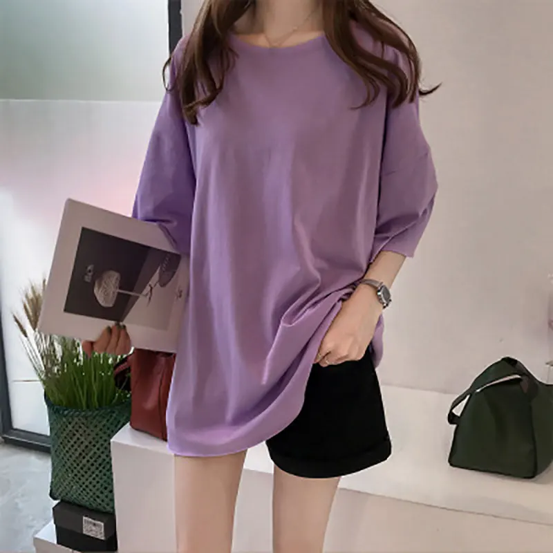 Top Women's t-shirts summer shirt solid color cotton pullover all-match mid-length harajuku loose lazy style y2k woman tshirt