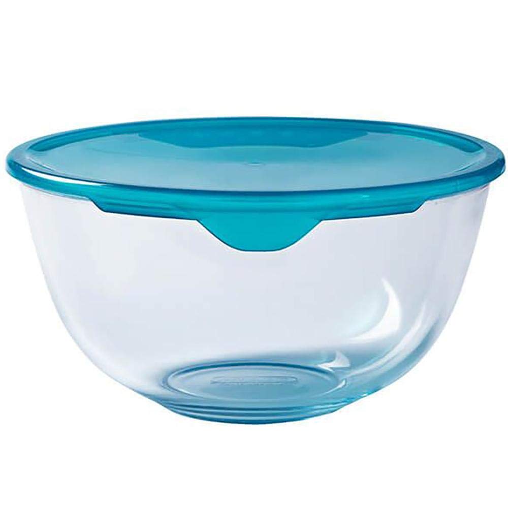 Миска из стекла PYREX Synergy Trading с термостойкой крышкой PRX0007, подходит для микроволновой печи, прозрачная, 2,0 л синий