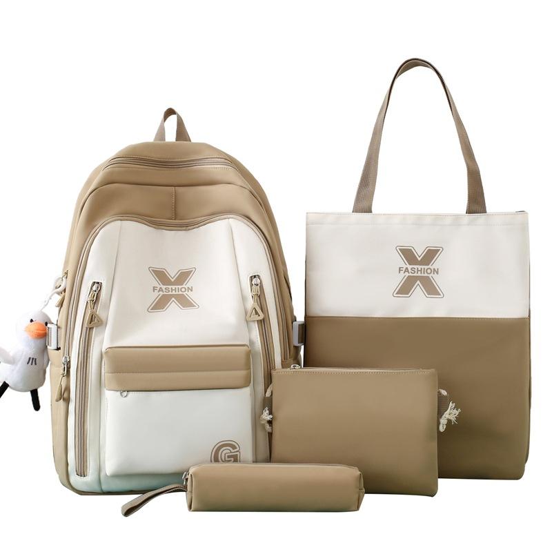 Многокомпонентный рюкзак, набор, цветной блок, студенческий школьный рюкзак, женский нейлоновый рюкзак большой вместимости для средней школы хаки