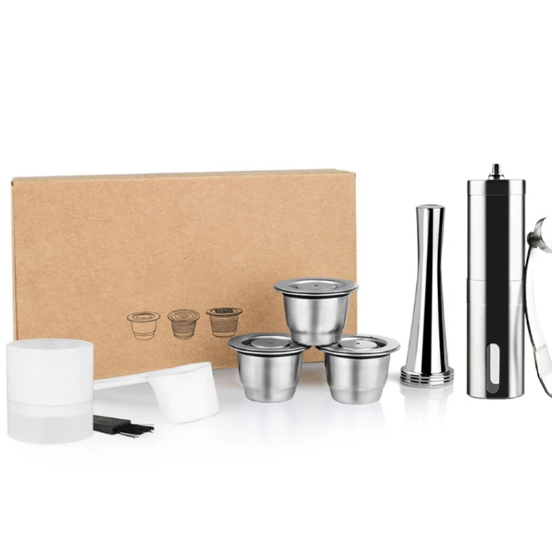 Многоразовые капсулы для кофе, многоразовый фильтр из нержавеющей стали, чашка для эспрессо, ручная мельница, наполнитель для порошка, моло...