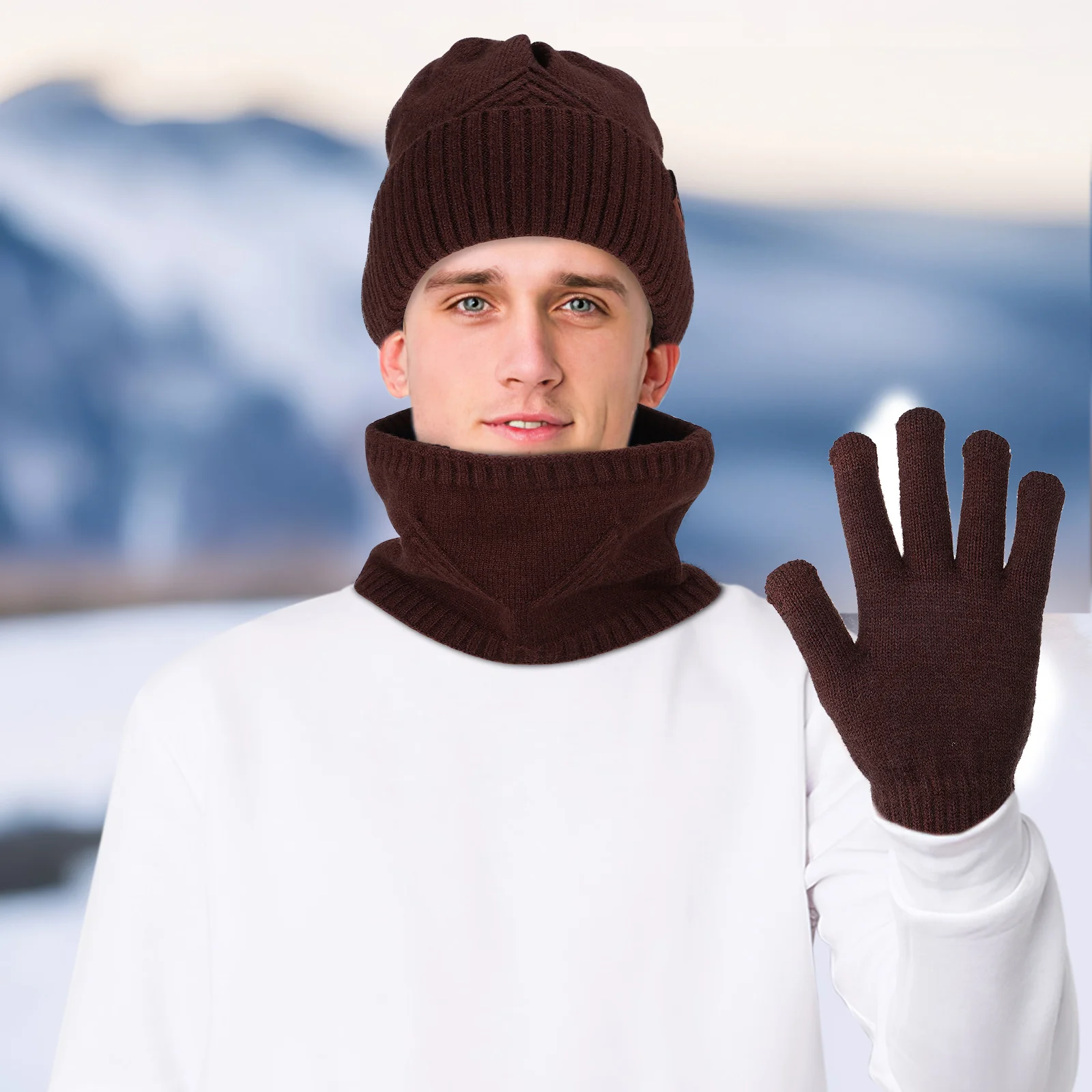 Touch Screen Gloves Set Warm Knit Scarf Hat Universal Size For Men Women Compatible Smartphones Outdoor Winter Travel