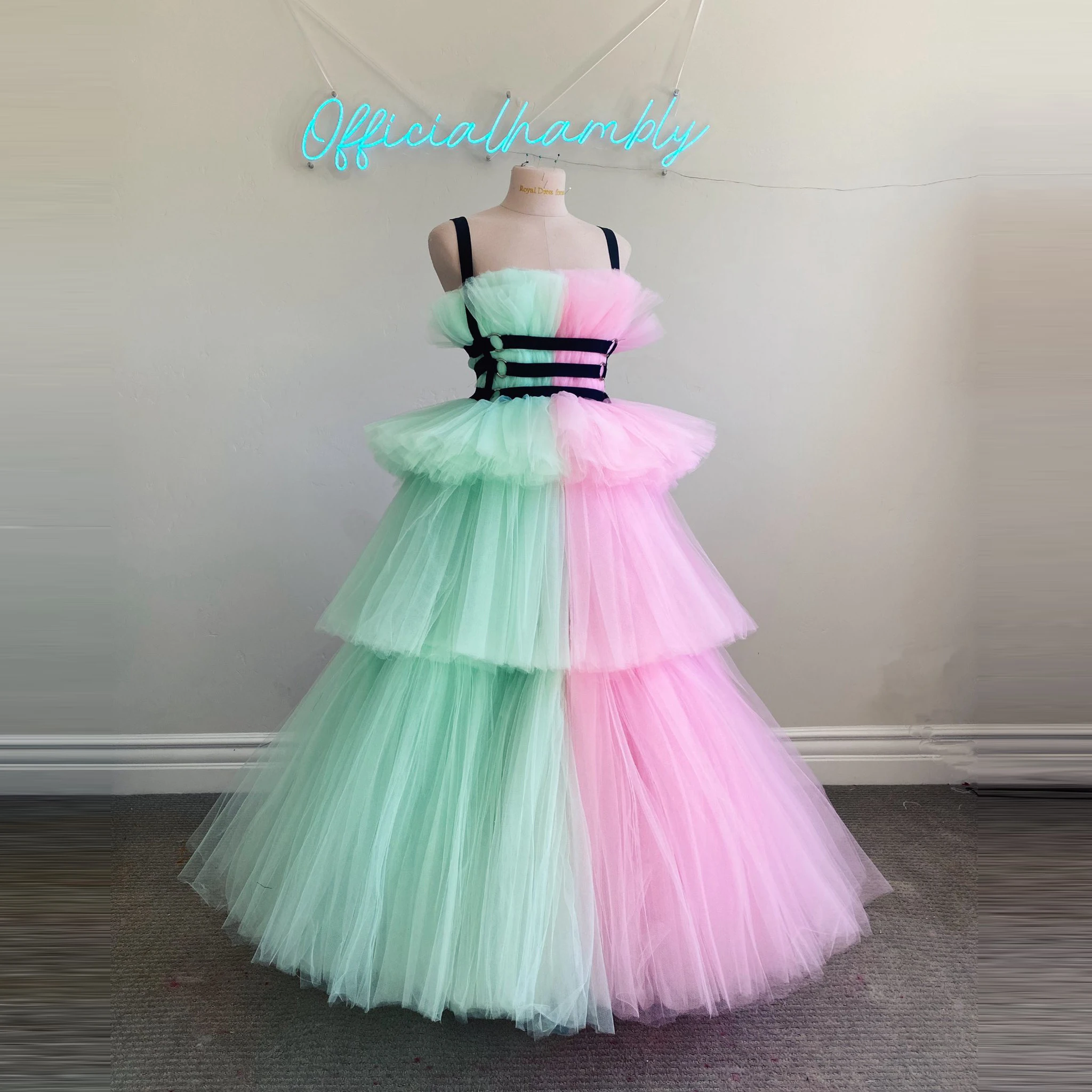 Многослойное Тюлевое платье синего и розового цвета, черные вечерние платья до пола без бретелек с поясом, длинные платья для выпускного ве...
