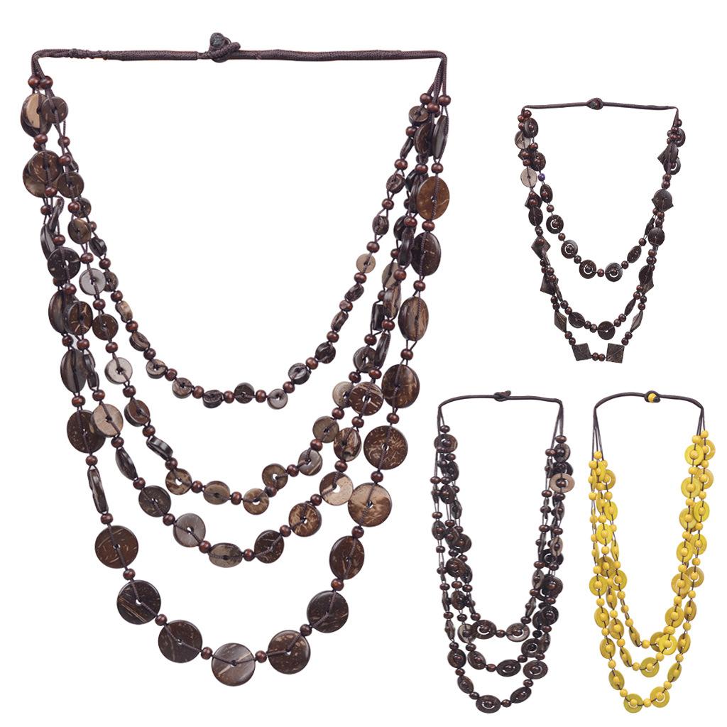 Многослойное ожерелье из скорлупы кокоса в этническом стиле из бисера для женских ювелирных аксессуаров