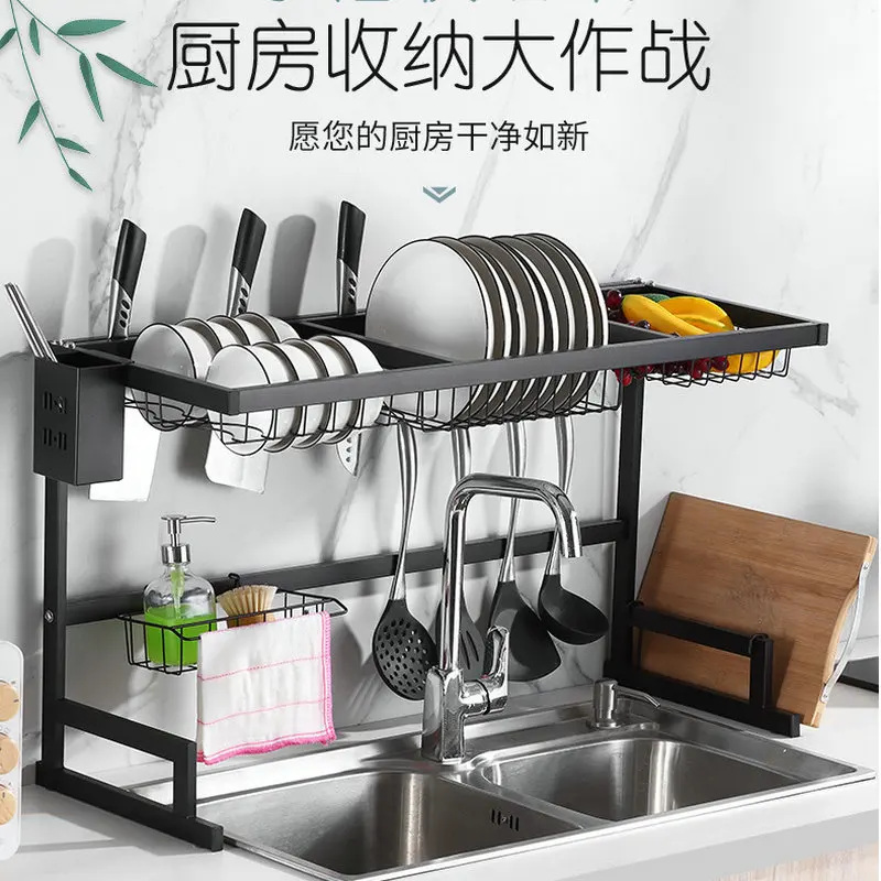Многофункциональная Корзина для ножей из нержавеющей стали черного кухонная полка для раковины с держатель для палочек полкой для хранени...