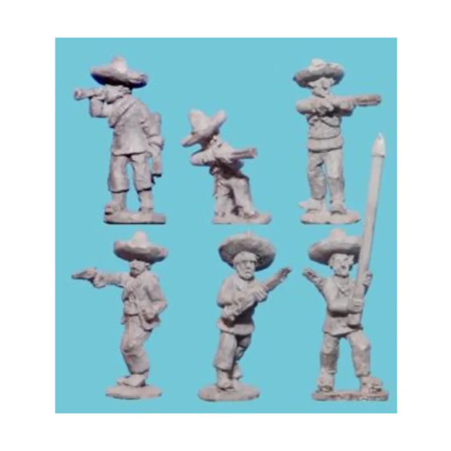 Мексиканская иррегулярная кавалерия спешена с командованием, American Experience - Uprising in Mexico (15mm) (Blue Moon)