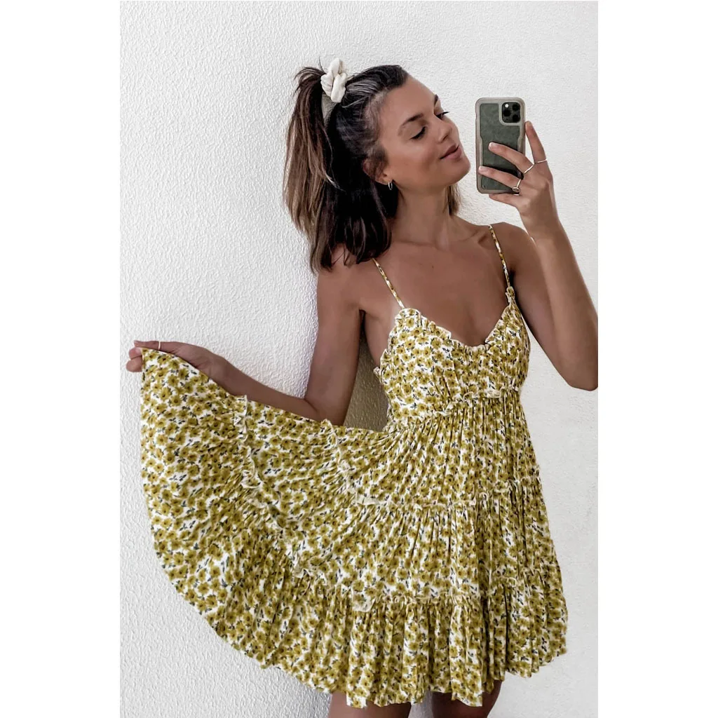 New Spring Summer 2025 Floral Print Fresh And Sweet Backless Camisole Dress 1302