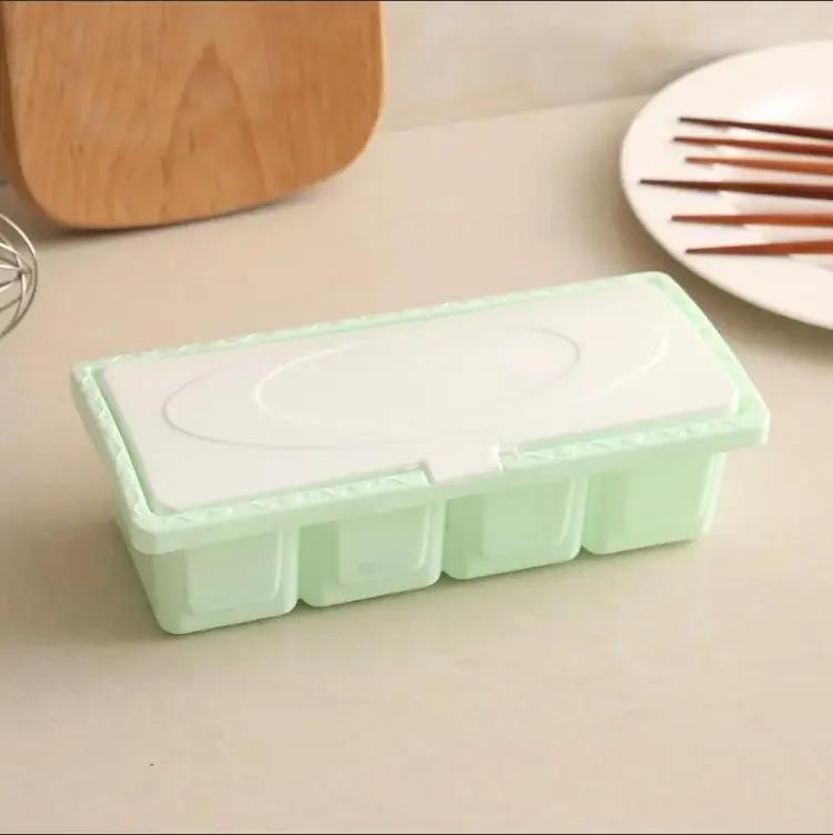 Многофункциональная пластиковая коробка для приправ, соль, глутамат натрия, приправа, кухонный разделитель с ложкой и крышкой, баночка для приправ, набор баночек для специй зелёный