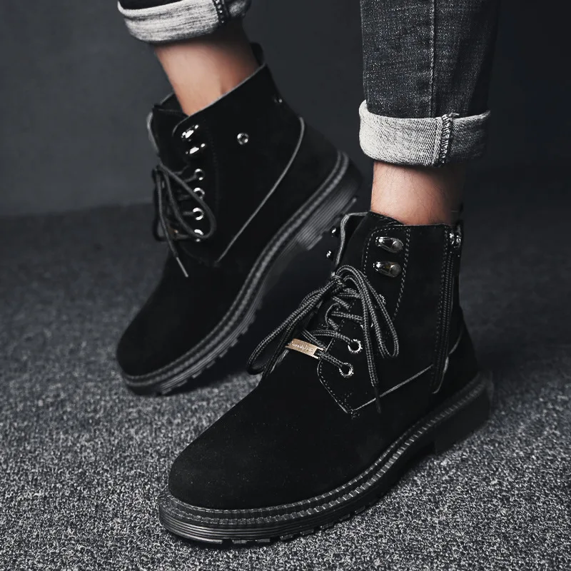 Classics Leisure Chelsea Boots Men Ankle Round Toe Lace-Up Boots Solid Casual Cross-tied Motorcycle Shoes