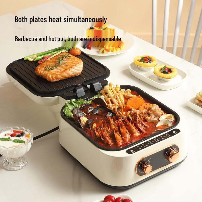 Многофункциональная электрическая шабу-шабу и гриль блинница: Двусторонняя нагревательная поверхность, большая вместимость, сковорода для жарки и гриля высокой ценности. 500+ Units