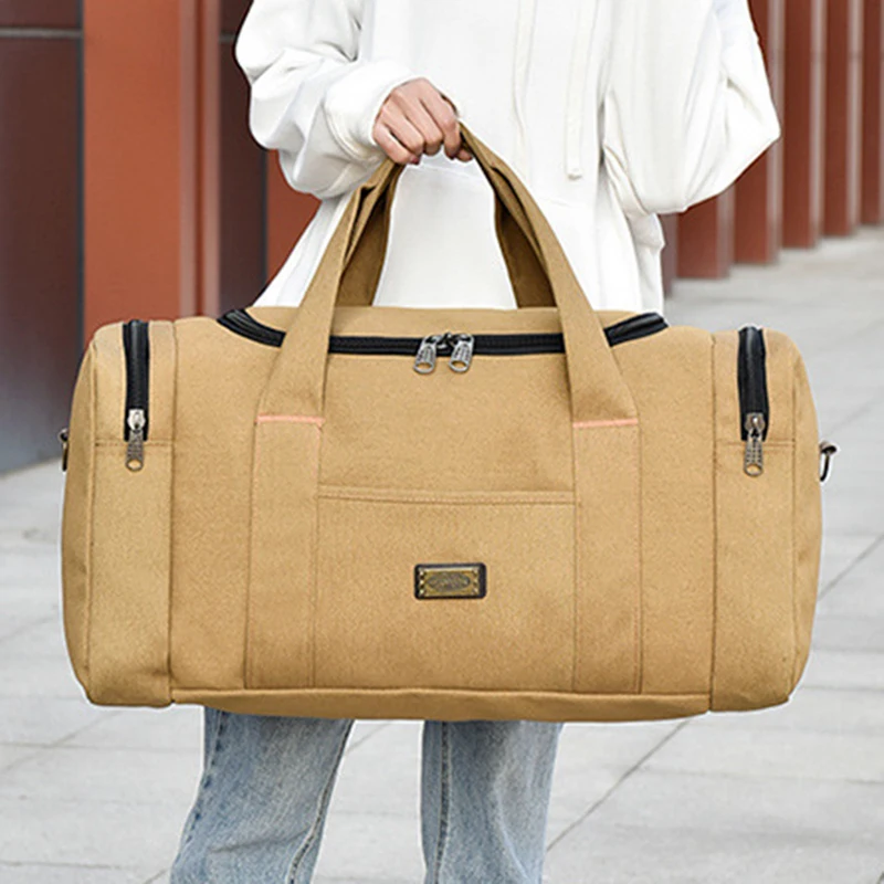 Новые модные холщовые дорожные сумки для мужчин, винтажная спортивная сумка через плечо, Женская вместительная сумка для ручной клади, сумка KhaqiBag