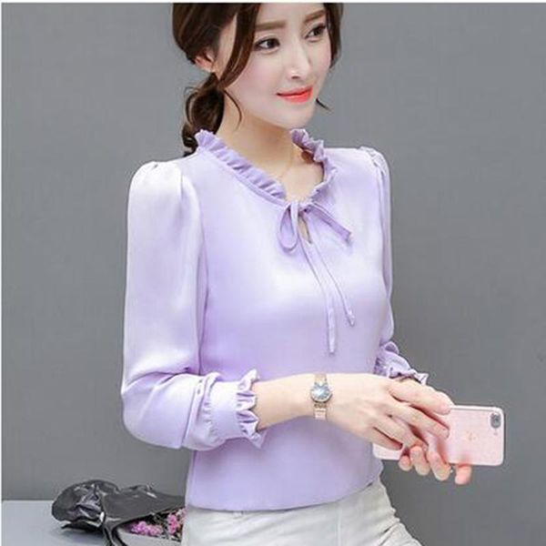 women's blouses & shirts 2021 spring and summer han fan elegant bow chiffon shirt long-sleeved white base