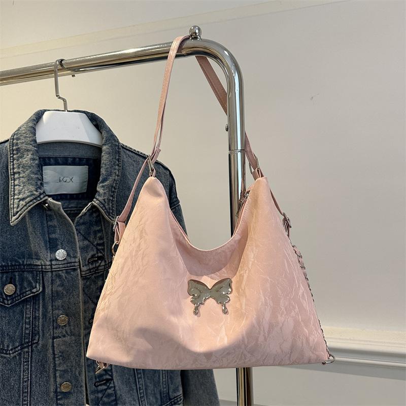 Многофункциональный рюкзак сумка-тоут из замши с бантом женская 2025 новая большая вместительная сумка-цепочка для通勤 розовый