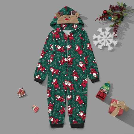 ZMHEGW Christmas Pajamas Kids Sleepwear For Family Matching Cute Big Headed Deer Print Pjs Plaid Long Sleeve Jumpsuit Soft Casusal Holiday Romper