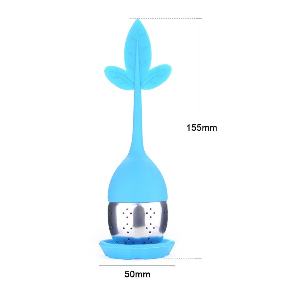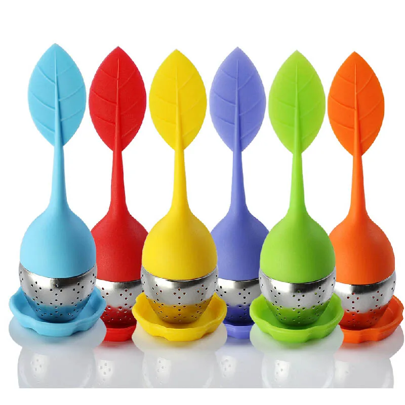 Многоцветный фильтр для чая из нержавеющей стали с тонкой сеткой с BPA бесплатно силиконовая ручка в форме листа и поднос для капель 10 шт./лот ...