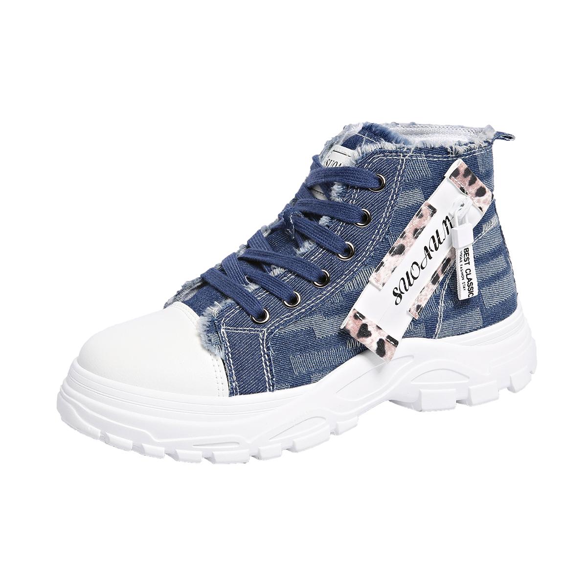 Мода Большой Размер 2025 Обувь Женская Высокий Верх Женские Вулканизированные Туфли Уличные Женские Кроссовки Платформа Повседневная Джинсовая Женская Повседневная Обувь 35 джинсовый синий